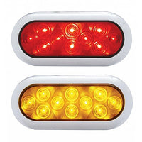 United Pacific - 10 LED 6" Oval Flange Mount Stop, Turn & Tail Light With Bezel - Red or Amber LEDs (Red or Amber Lens)