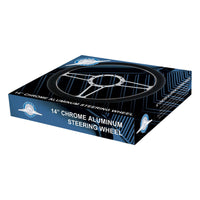 United Pacific - 14" Chrome Aluminum Chopper Style Steering Wheel With Black Engineered Leather Grip