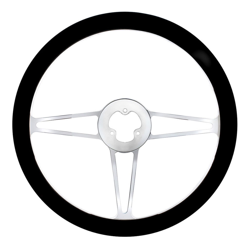 United Pacific - 18" Chrome Aluminum "3-Spoke" Style Steering Wheel With Black Leather Rim