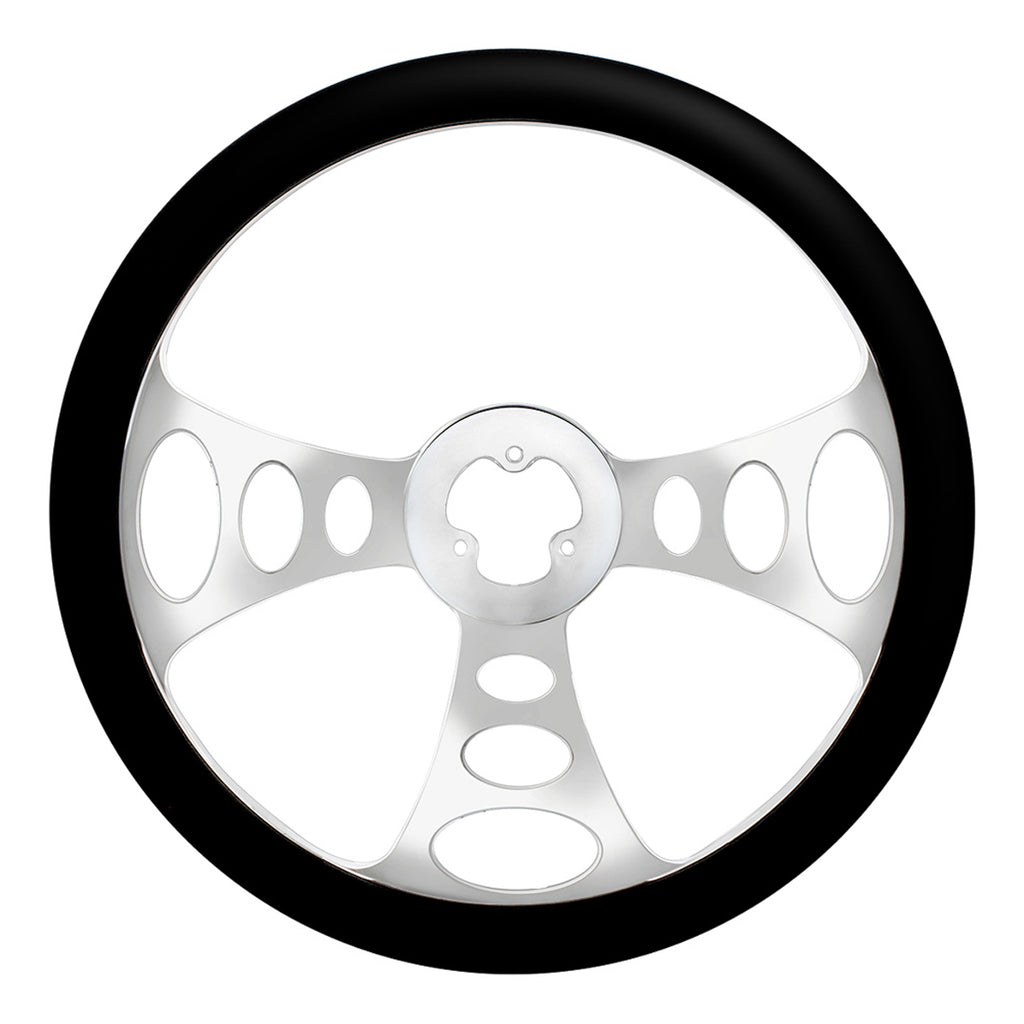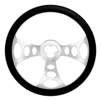 United Pacific - 18" Chrome Aluminum "Chopper" Style Steering Wheel With Black Leather Rim