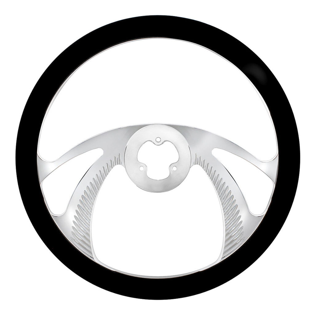 United Pacific - 18" Chrome Aluminum "Scorpion" Style Steering Wheel With Black Leather Rim