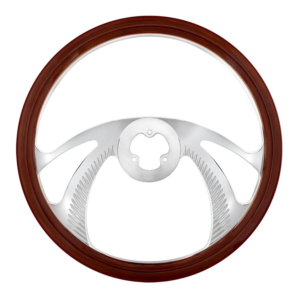 United Pacific - 18" Chrome Aluminum "Scorpion" Style Steering Wheel With Wood Rim