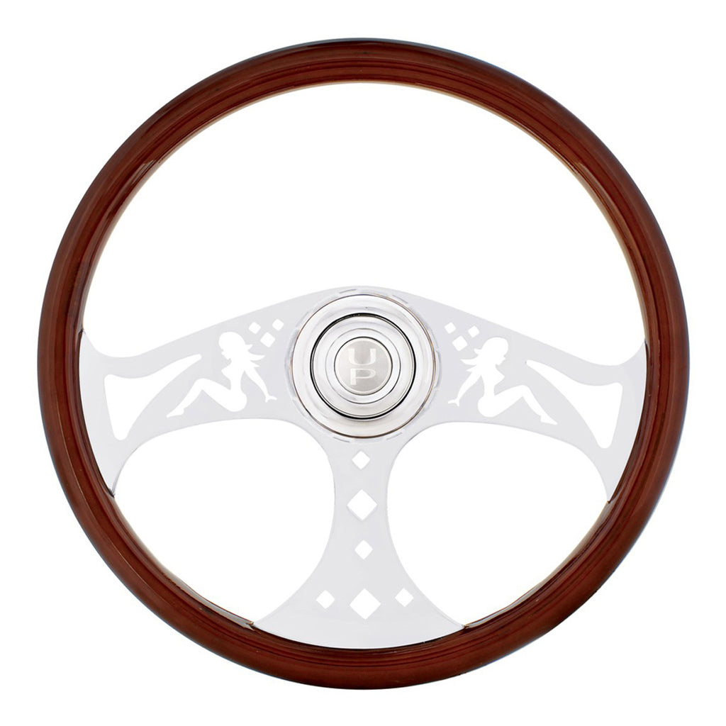 - 18" rim steering wheel with beautiful chrome plated spokes and lady figure silhouette.