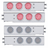 United Pacific - 2-1/2" Bolt Pattern Chrome Spring Loaded Bar w 6 X 36 LED 4" Lights & Visors - Red LEDs (Red or Clear Lens)