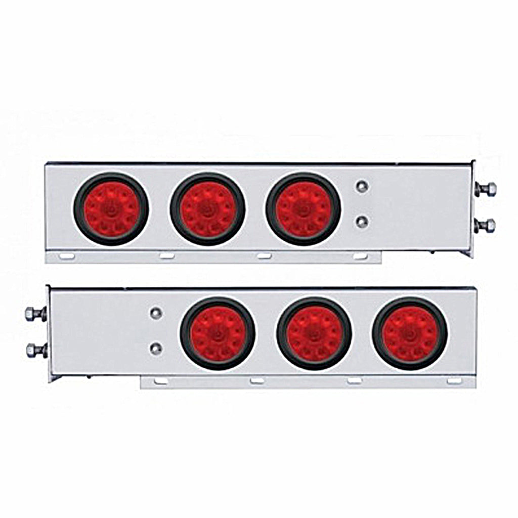 United Pacific - 2-1/2" Bolt Pattern Chrome Spring Loaded Bar w 6 X 4" 10 LED Lights - Red LEDs (Red or Clear Lens)