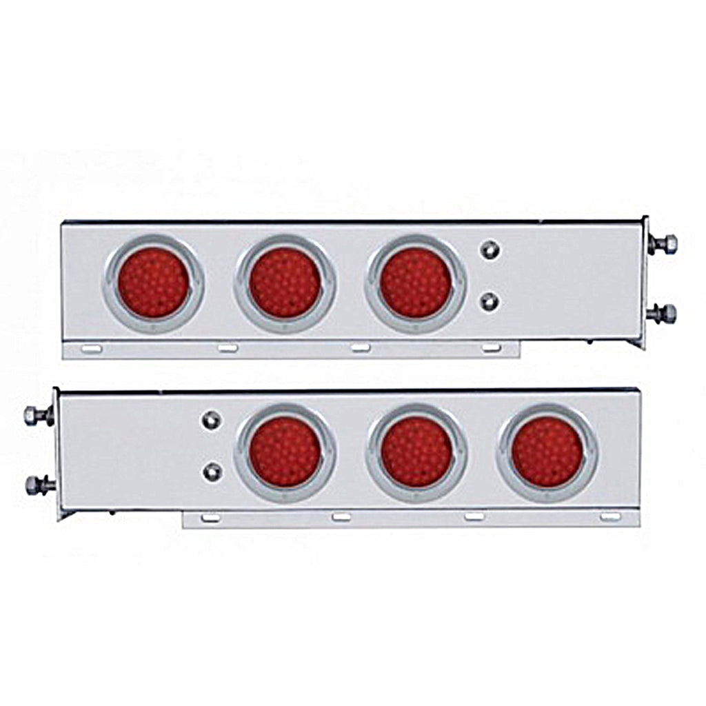 United Pacific - 2-1/2" Bolt Pattern Stainless Steel Spring Loaded Bar w 6 X 36 LED 4" Lights & Visors - Red LEDs (Red or Clear Lens)