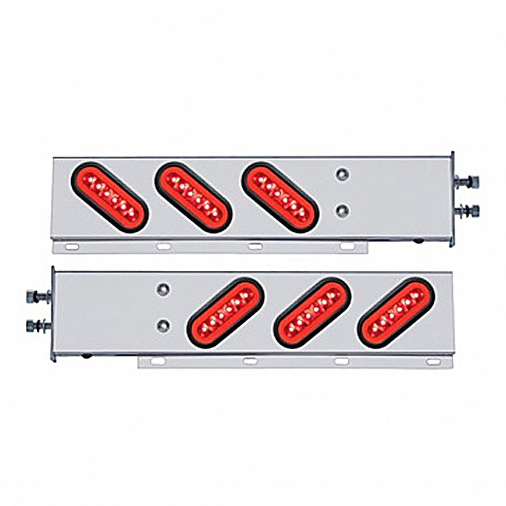 United Pacific - 2-1/2" Bolt Pattern Stainless Steel Spring Loaded Bar w 6 X 22 Red LED 6" Oval GloLight & Grommet - Red LEDs (Red or Clear Lens)