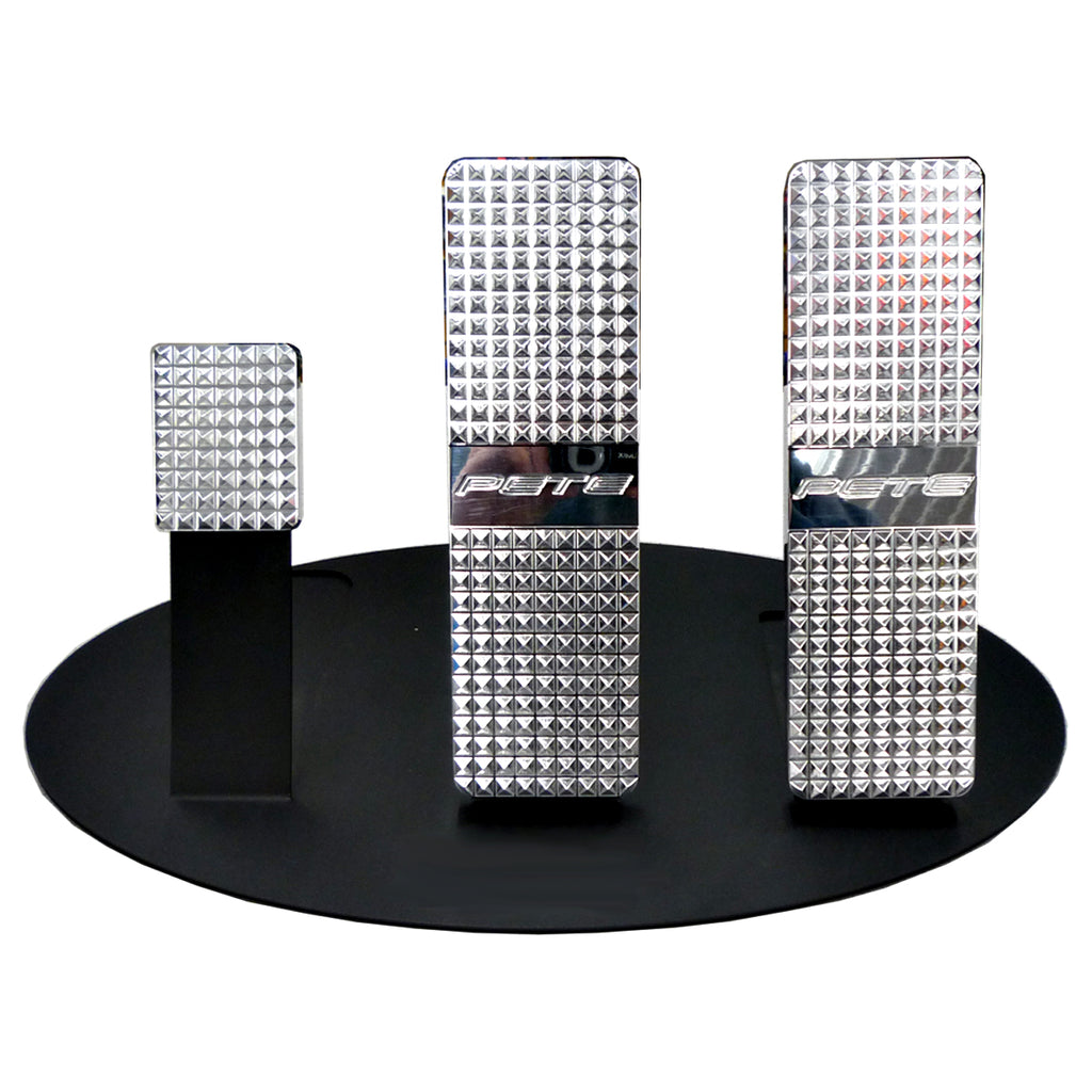 The Ultimate Pedal Upgrade—There are no other pedals on the market that come close to these Custom High-Quality Heavy Truck Pedals! Machined from solid blocks of billet aluminum. Installs easily. Polished Pyramid-cut diamond pattern reflects light in all directions and offers an unbelievable non-slip surface.