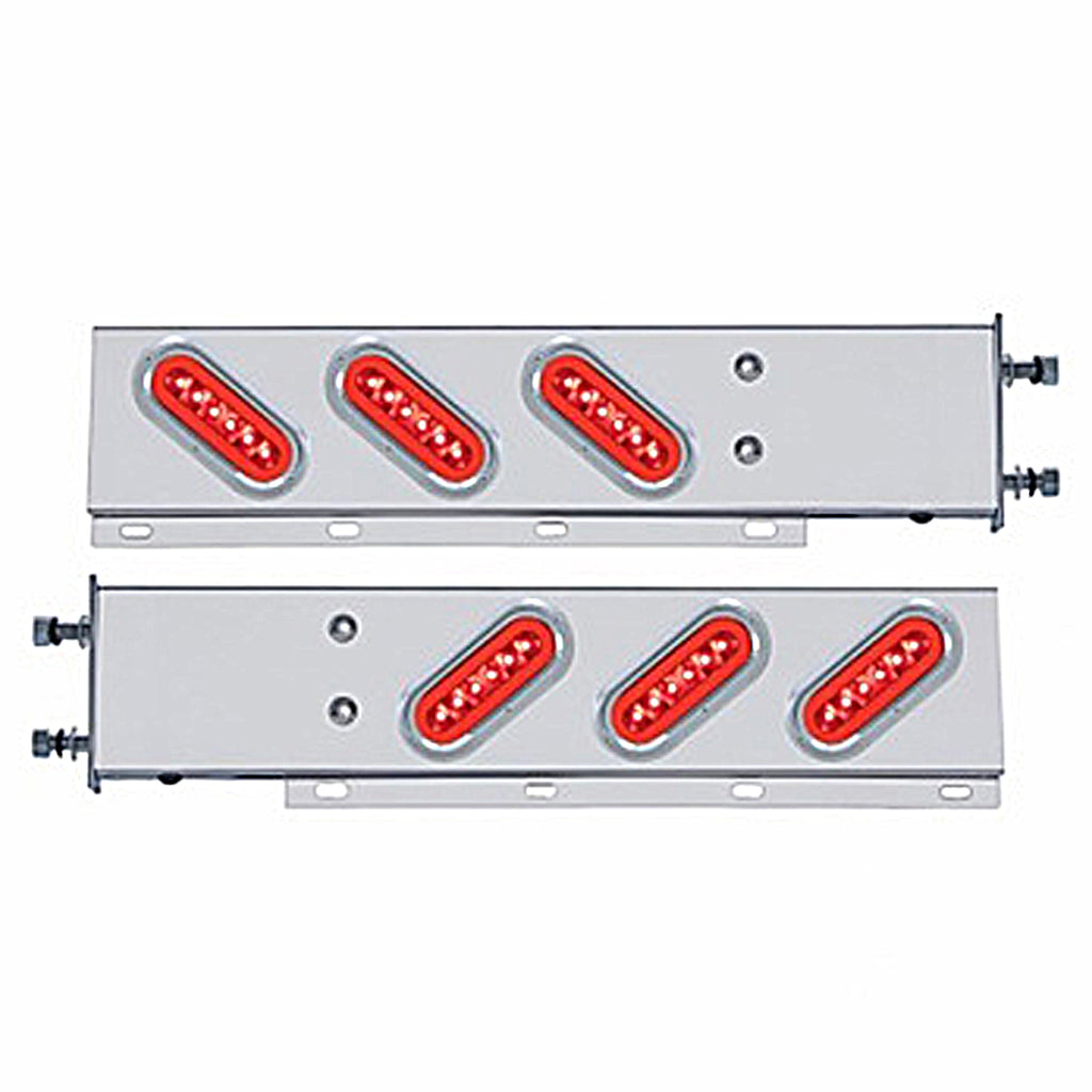 United Pacific - 3-3/4" Bolt Pattern Stainless Steel Spring Loaded Bar w 6 X 22 Red LED 6" Oval GloLight & Visor - Red LEDs (Red or Clear Lens)