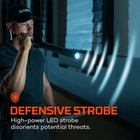 The Defensive Strobe mode utilizes a randomized pattern that can momentarily disorient potential threats.