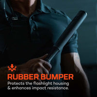 The rubber bumper enhances the impact resistance of the flashlight housing.