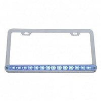 United Pacific - Chrome License Plate Frame With 14 LED 12" Light Bar - Blue, Green or White LEDs (Clear Lens)