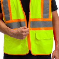 - Bright high visibility yellow safety vest reflector strips.