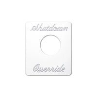 - Features stainless steel plate engraved "Shut Down Override" in script.