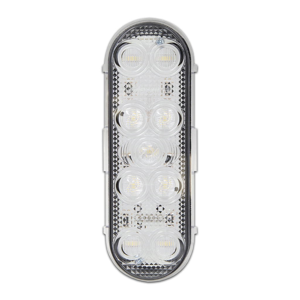 The M63347-A is a 6" Oval LED Back-Up Light featuring a PL-3 Connector integrated into the rear housing. When paired with the Maxxima M50900 Pigtail (sold separately) it provides a secure connection and is also compatible with industry standard PL-3 connectors. It features our patented Lighting Optics lens for superior off-axis visibility. It is DOT FMVSS108 compliant in either 1-lamp or 2-lamp configurations. This light features a polycarbonate housing and lens and is backed by a 5-year warranty.
