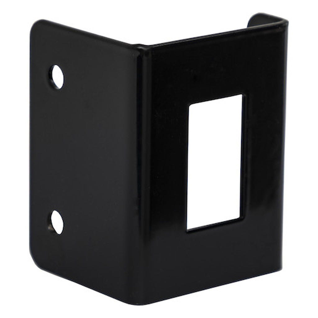 Black Rocker Switch Bracket for 12 Volt Double Momentary OpenBuyers Products Rocker Switch Mounting Bracket is commonly used with a rocker switch for tarp gear motors. It is constructed from durable powder-coated steel and has pre-punched mounting holes for quick installation.