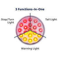 United Pacific - 19 LED 4" Round Double Fury Stop, Turn, Tail Light w/ Warning Light - Red & Amber LEDs (Clear Lens)