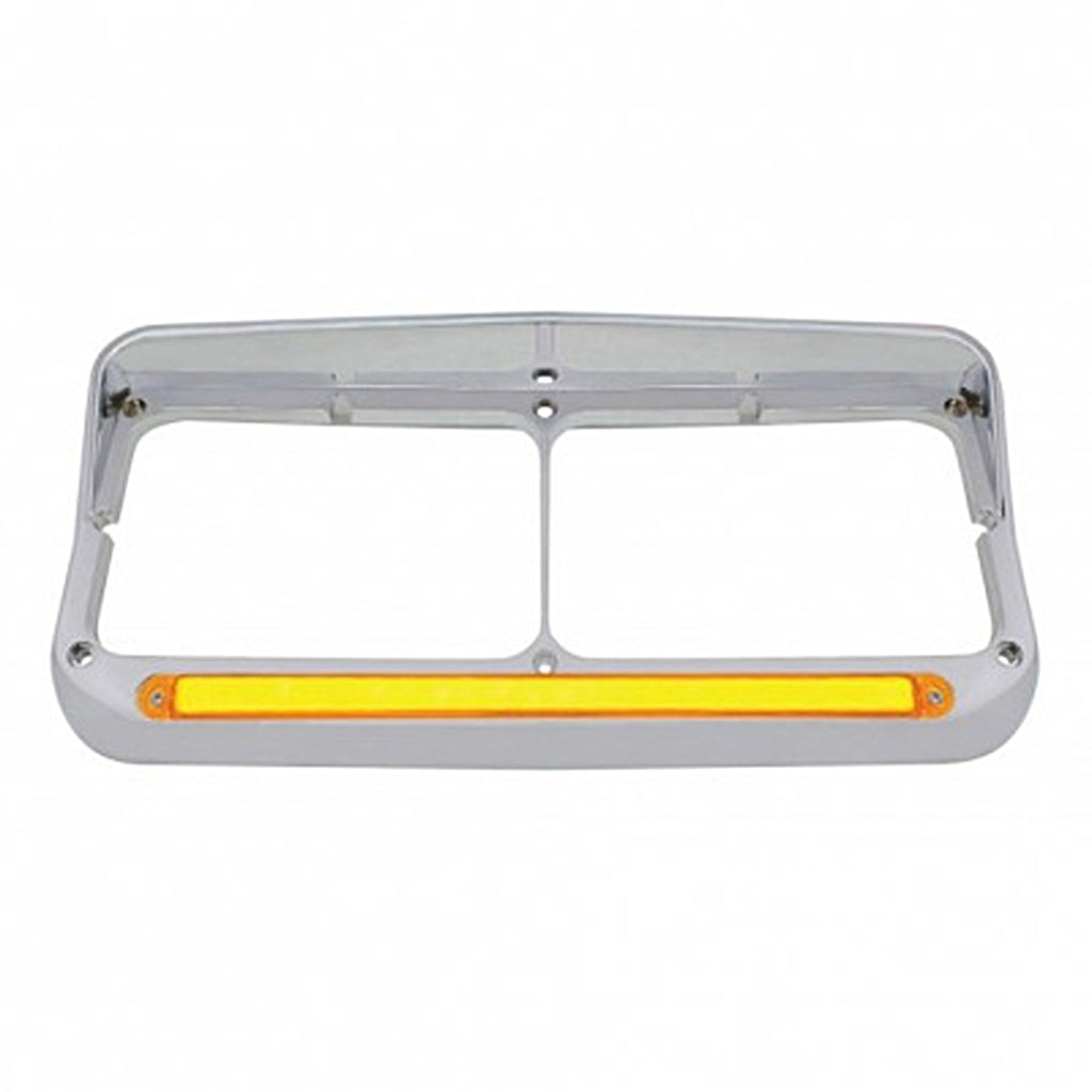 United Pacific - 24 LED Rectangular Dual Headlight Bezel With Visor & GloLight Amber LEDs (Amber or Clear Lens)