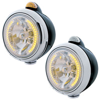 United Pacific - Black Guide 682-C Headlight H4 With Amber LED & Dual Mode LED Signal - Amber LEDs (Amber or Clear Lens)