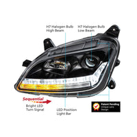 United Pacific - "Blackout" Projection Headlight With LED Sequential Turn & DRL For 2012-2021 Peterbilt 579 (Driver or Passenger Side)