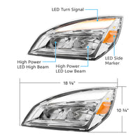 United Pacific - High Power Chrome or Black LED Headlight For 2018-2024 Freightliner Cascadia (Driver or Passenger Side)