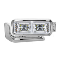 - All LED dual function headlight assembly with chrome plastic housing and die-cast mounting arm.