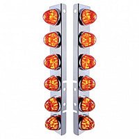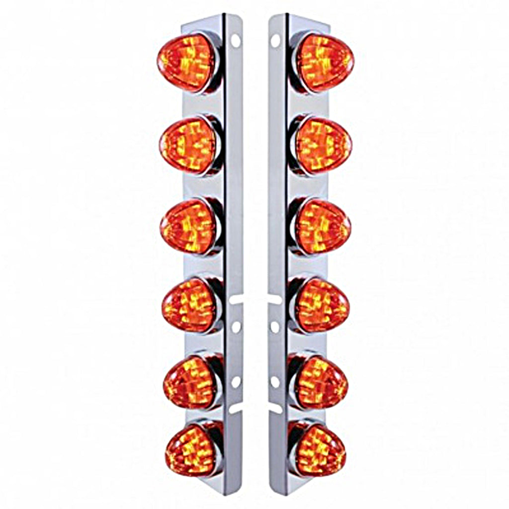 United Pacific - Stainless Steel Front Air Cleaner Bracket w/ 12 X LED Watermelon Lights & Stainless Steel Bezels For Peterbilt - Amber LEDs (Amber or Dark Amber Lens)