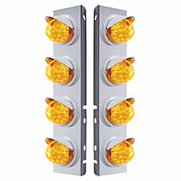 United Pacific - Stainless Steel Front Air Cleaner Bracket w/ 8 X 17 Amber LED Dual Reflector Lights & Visors For Peterbilt (Amber or Clear Lens)