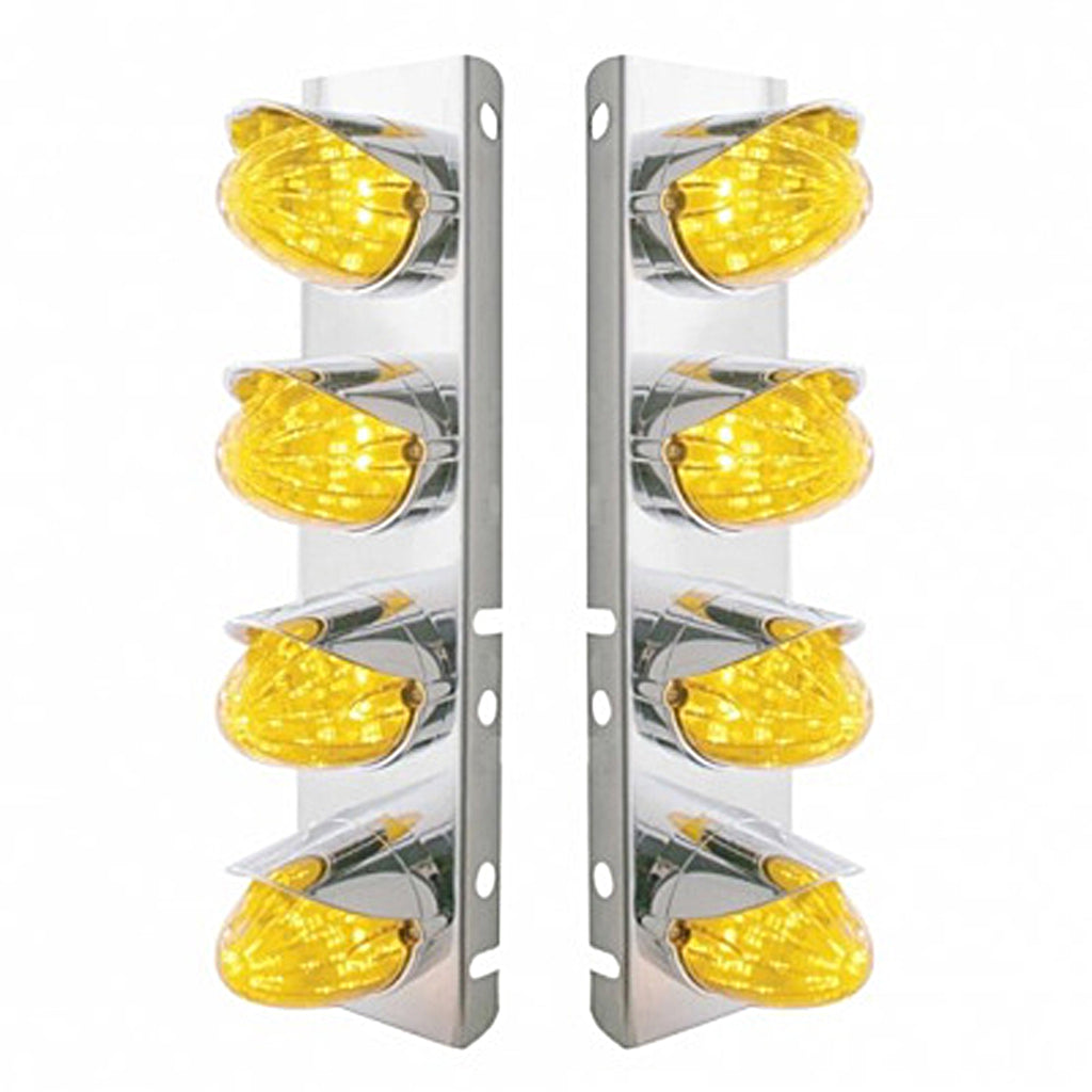 United Pacific - Stainless Steel Front Air Cleaner Bracket w/ 8 X 19 LED Watermelon Lights & Visors For Peterbilt - Amber LEDs (Amber or Clear Lens)