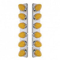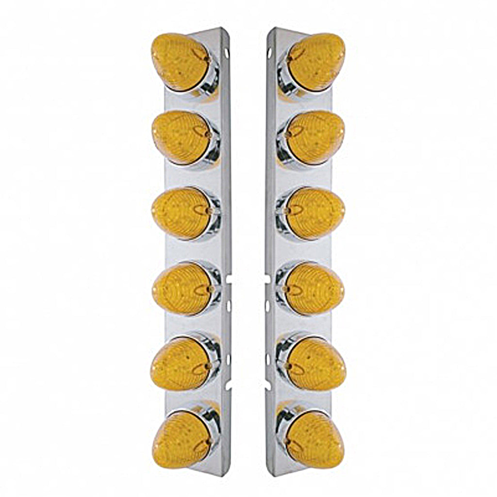 United Pacific - Stainless Steel Front Air Cleaner Bracket w/ 12 X 19 LED Beehive Lights & Bezels For Peterbilt - Amber LEDs (Amber or Clear Lens)