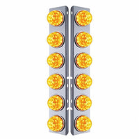 United Pacific - Stainless Steel Front Air Cleaner Bracket W/12X 17 Amber LED Reflection Watermelon Lights & Stainless Steel Bezels For Peterbilt - Amber LEDs (Amber or Clear Lens)