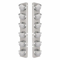 United Pacific - Stainless Steel Front Air Cleaner Bracket With 12X 17 LED Reflector Watermelon Lights & Stainless Steel Visors For Peterbilt - Amber LEDs (Amber or Clear Lens)