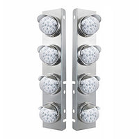 United Pacific - Stainless Steel Front Air Cleaner Bracket w 8 X 17 LED Reflector Lights & Stainless Steel Visors For Peterbilt - Amber LEDS (Amber or Clear Lens)