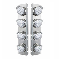 United Pacific - Stainless Steel Front Air Cleaner Bracket w 8 X 17 LED Dual Function Reflector Lights & Stainless Steel Visors For Peterbilt - Amber LEDs (Amber or Clear Lens)