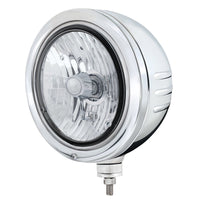 United Pacific - Stainless Bullet Embossed Stripe Headlight Housing With Crystal H4 Halogen Headlight