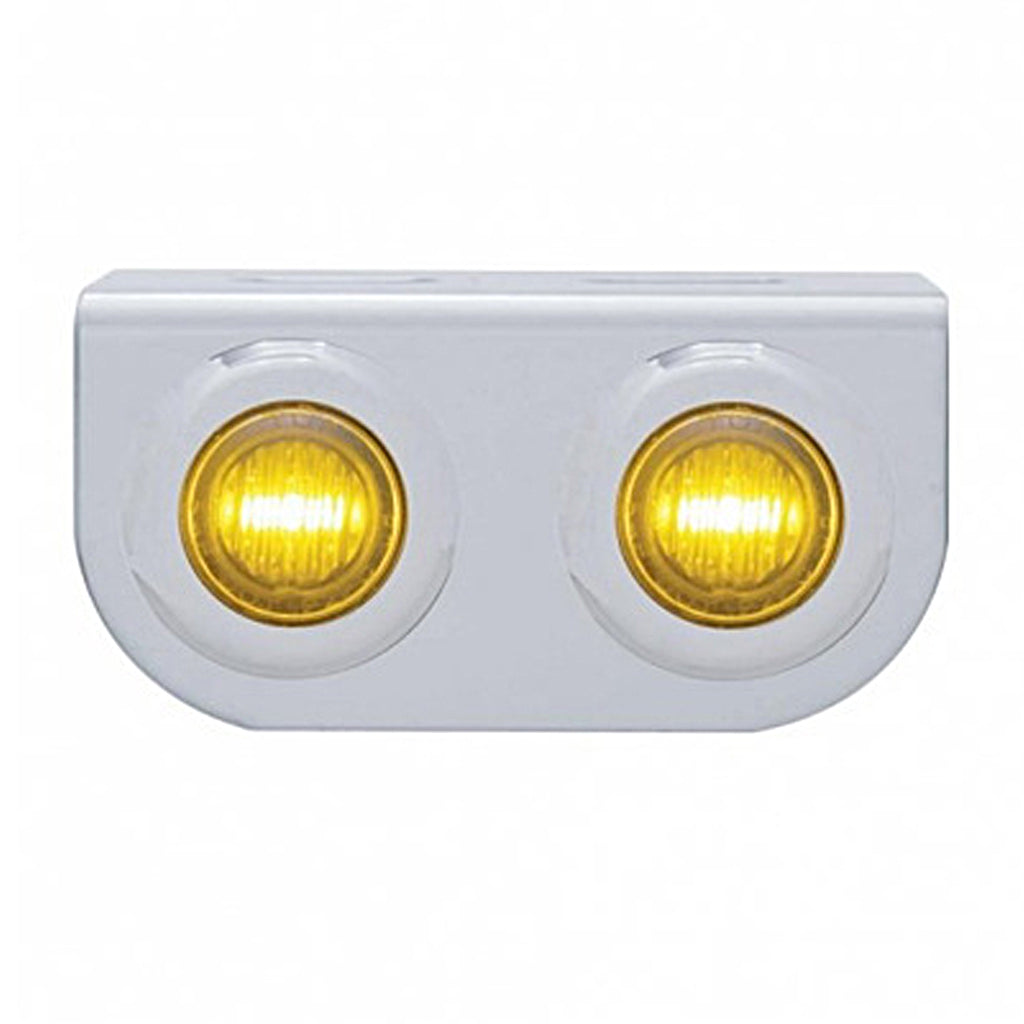 United Pacific - Stainless Steel Light Bracket w/ 2 X 3 LED 3/4" Mini Lights - Amber, Red, Blue or White LEDs (Amber or Clear Lens)