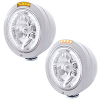 United Pacific - Stainless Steel Bullet Classic Headlight H4 With White LED & Signal (Amber or Clear Lens)
